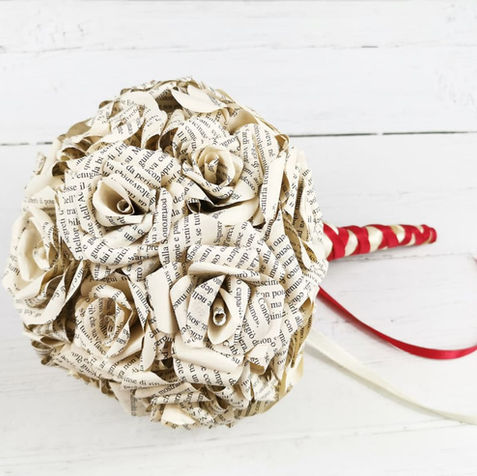 Fiori che non appassiscono mai, riempiti con le frasi del vostro libro preferito: i bouquets e le composizioni in carta possono dare una sfumatura elegante e allo stesso tempo delicata al vostro giorno speciale. Ideali per gli amanti della letteratura che sognano una cerimonia da favola, altamente personalizzabili e fatti per rimanere nel tempo.
